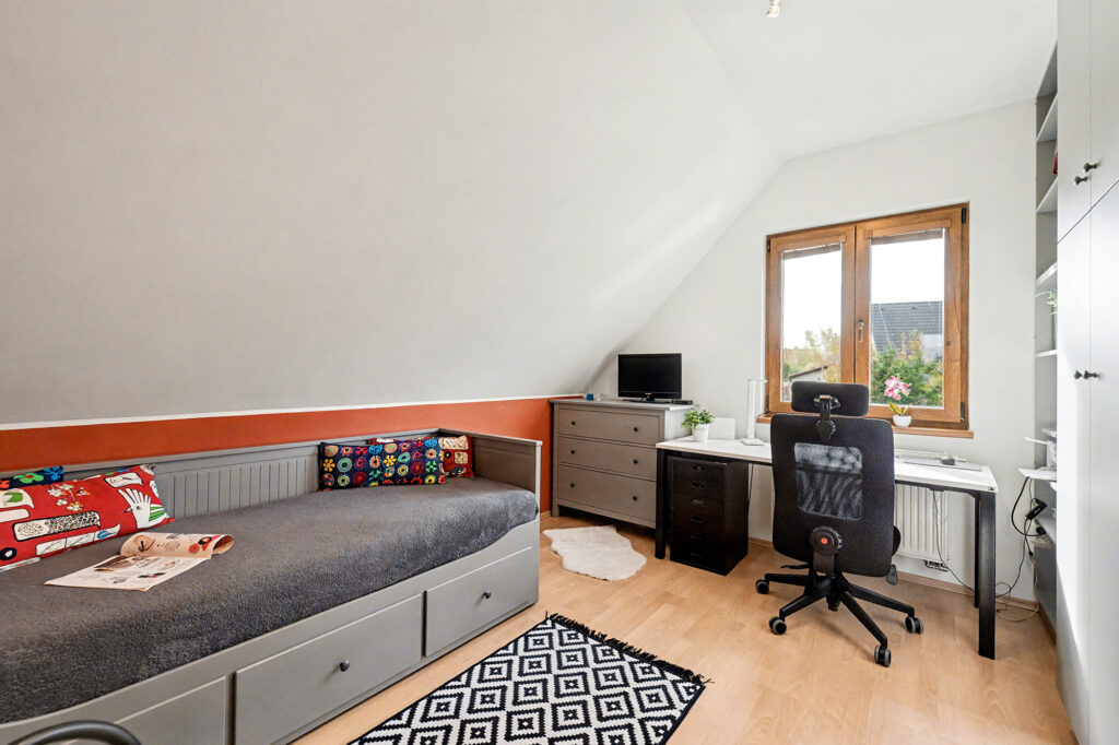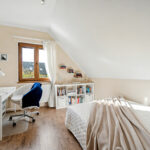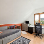 První pokoj je dětský pokoj (12 m2) s pracovním koutem a vestavěnými skříněmi na míru. Na něj navazuje druhý dětský pokoj (12 m2), také s pracovním stolem a vestavěnými skříněmi na míru.